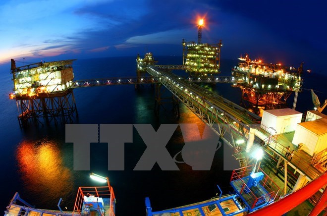 Các giàn khoan khai thác dầu khí của Liên doanh Vietsopetro tại mỏ Bạch Hổ. (Ảnh: Huy Hùng/TTXVN)