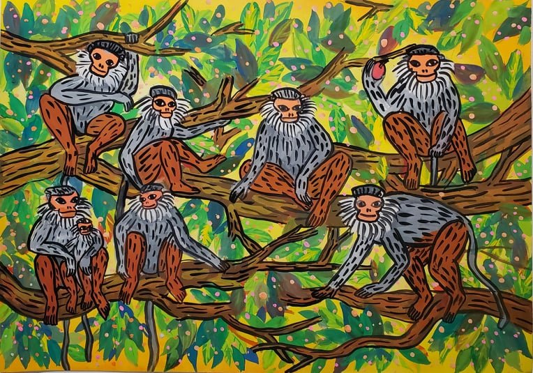 | Tác phẩm "Vẻ đẹp của vọoc Chà Vá chân nâu trên bán đảo Sơn Trà" của em Phạm Tiểu Quỳnh, lớp 7/10 trường THCS Huỳnh Thúc Kháng, Quận Cẩm Lệ (Giải Nhất). |