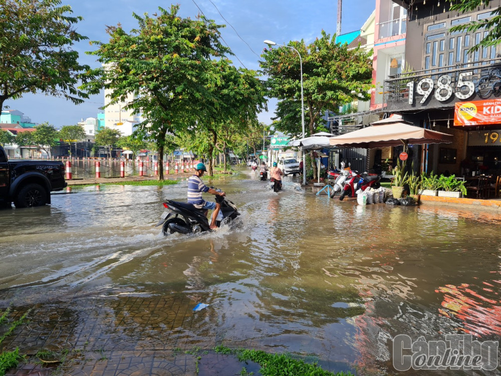 Theo đó, lúc 18 giờ 30 phút ngày 12-9-2022, mực nước cao nhất tại trạm Cần Thơ trên sông Hậu là 1,97m; sáng 13-9 mực nước cao nhất là 1,98m (cao hơn mực nước sáng 12-9 là 0,05m). Nhiều tuyến đường nội ô quận Ninh Kiều, như: Mậu Thân, Huỳnh Cương, Võ Văn Kiệt, khu vực Hồ Búng Xáng, Trần Hưng Đạo… bị ngập nước, gây khó khăn sinh hoạt, đi lại, kinh doanh của người dân. Dự báo triều cường sẽ tiếp tục lên cao vào ngày 14, 15-9-2022 ở mức trên 1,9m. Đồng thời, năm 2022 triều cường sẽ tiếp tục xuất hiện vào những ngày đầu và giữa các tháng 9, 10 âm lịch (tức tháng 10 và 11 năm 2022). Trong đó, đỉnh triều cường có khả năng cao nhất trong năm 2022 từ 2,1-2,2m (cao hơn báo động III từ 0,1-0,2m) vào tháng 10 và tháng 11-2022, cần đề phòng ngập lụt đô thị.