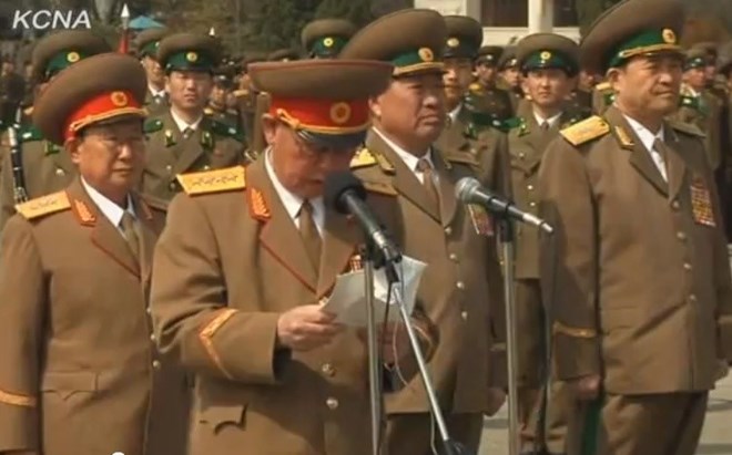 Ông Ri Myong-Su (đang phát biểu) khi còn là Bộ trưởng An ninh Triều Tiên. (Nguồn: KCNA)