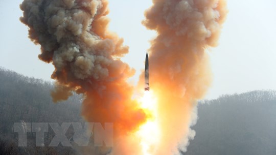 Trước đó, ngày 22/3, Triều Tiên tiến hành phóng tên lửa hành trình chiến lược "được gắn đầu đạn thử nghiệm mô phỏng đầu đạn hạt nhân."
