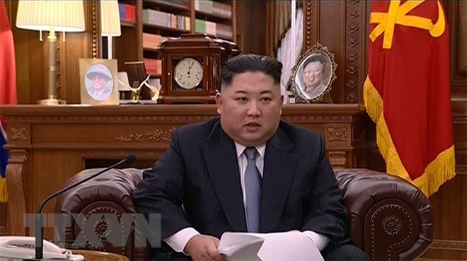 Nhà lãnh đạo Triều Tiên đọc thông điệp Năm mới 2019. (Ảnh: AP/TTXVN)