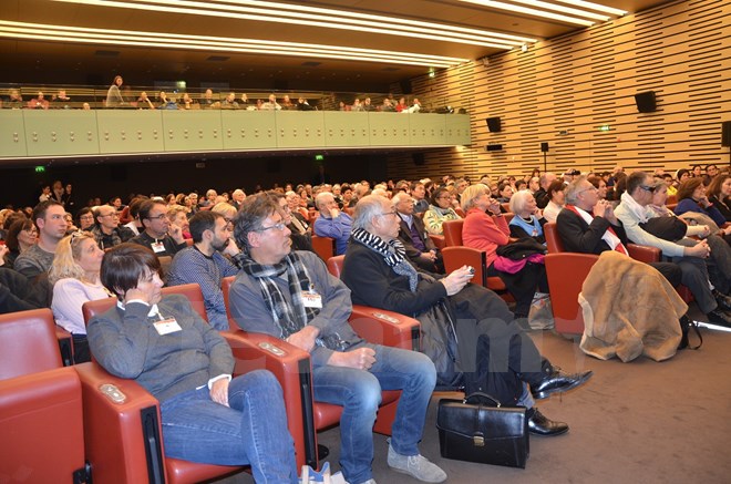 Quang cảnh phòng chiếu phim tại Quốc hội Pháp tối 17/1. (Ảnh: Bích Hà/Vietnam+)