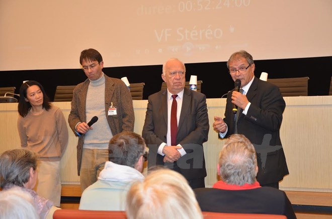 Chủ tịch Nhóm nghị sỹ hữu nghị Pháp-Việt Pascal Deghilhem phát biểu tại phiên giao lưu với khán giả trước khi bộ phim được trình chiếu. (Ảnh: Bích Hà/Vietnam+)