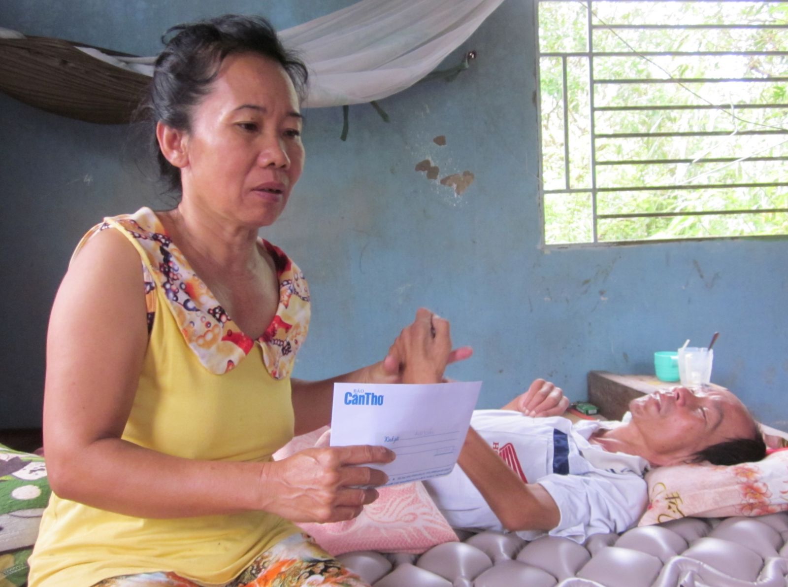 (CT) – Phóng viên Báo Cần Thơ vừa trao số tiền 1 triệu đồng (của bạn đọc đề nghị không nêu tên ở quận Ninh Kiều) cho 2 hoàn cảnh thương tâm ở phường Thường Thạnh, quận Cái Răng (mỗi trường hợp 500.000 đồng). Đó là anh Đồng Thanh Xuân, khu vực Yên Hạ (xem bài: “Giúp anh Xuân chống chọi với bệnh tật” trên Báo Cần Thơ điện tử ngày 18-3-2018) là thợ hồ, chẳng may lâm bệnh ngặt nghèo, nằm liệt một chỗ, hoàn cảnh gặp nhiều khó khăn; bà Phạm Thị Hiệp, khu vực Thạnh Thắng (xem bài: “Bà Hiệp cần được hỗ trợ” trên Báo Cần Thơ điện tử ngày 5-1-2015), gần 90 tuổi, mắc bệnh cao huyết áp, bị té gãy chân, nhưng gia cảnh neo đơn, hằng ngày, bà phải tự lo bản thân, nhờ hàng xóm giúp đỡ khi trái gió trở trời…