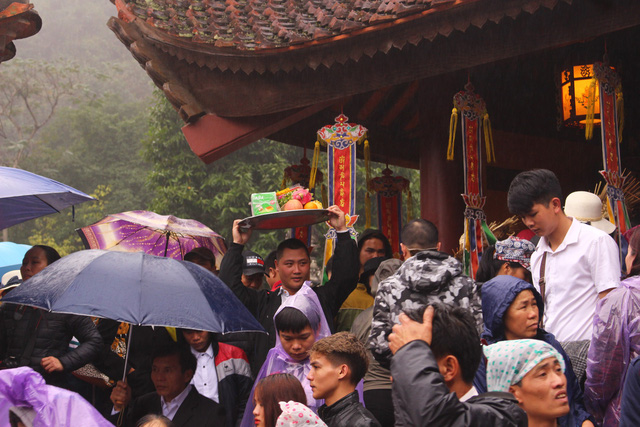Trong ngày khai hội, từng đoàn người đổ về di tích thắng cảnh từ sáng sớm. Dòng người nối đuôi nhau từ đường vào bến Đục, đền Trình dù tiết trời xuân đổ cơn mưa lớn.