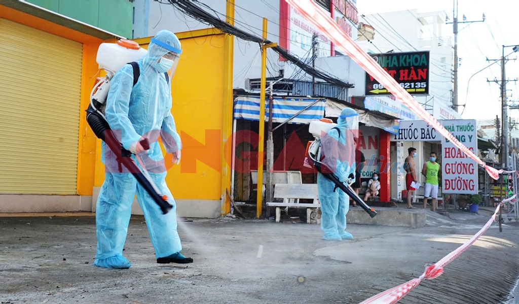 Phun xịt, khử khuẩn khu vực khoanh vùng, cách ly tại phường 2, TP.Tân An