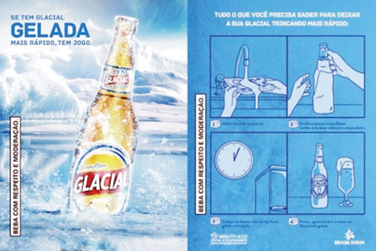 Nếu Mainichi Shimbunsha vẫn chưa thuyết phục, hãy đến Brazil. Một người đàn ông Brazil sau khi đọc xong tờ quảng cáo, anh ta xé nó, ngâm vào nước rồi bọc ngoài chai bia, bỏ vô ngăn đông tủ lạnh. Và chỉ bằng phân nửa thời gian ướp thông thường, anh ta đã có ngay chai bia mát lạnh. Nếu nghĩ đây là chuyện bịa nghĩa là bạn chưa bao giờ biết đến những trang quảng cáo được ướp sẵn các hạt muối li ti của hãng bia Glacial, giúp đẩy nhanh quá trình làm lạnh.