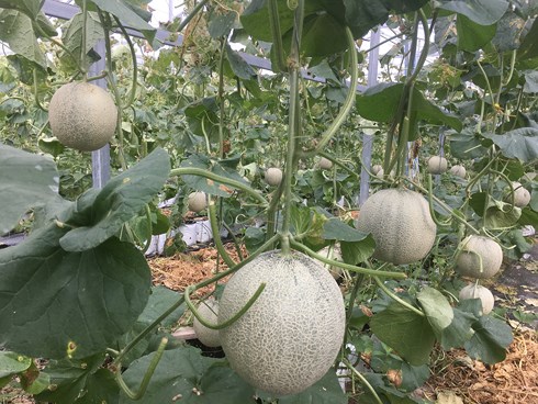 Dưa lưới phát triển xanh tốt. (Ảnh: Tấn Phong)