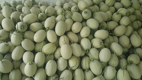 Thu hoạch dưa lưới. (Ảnh: Tấn Phong)