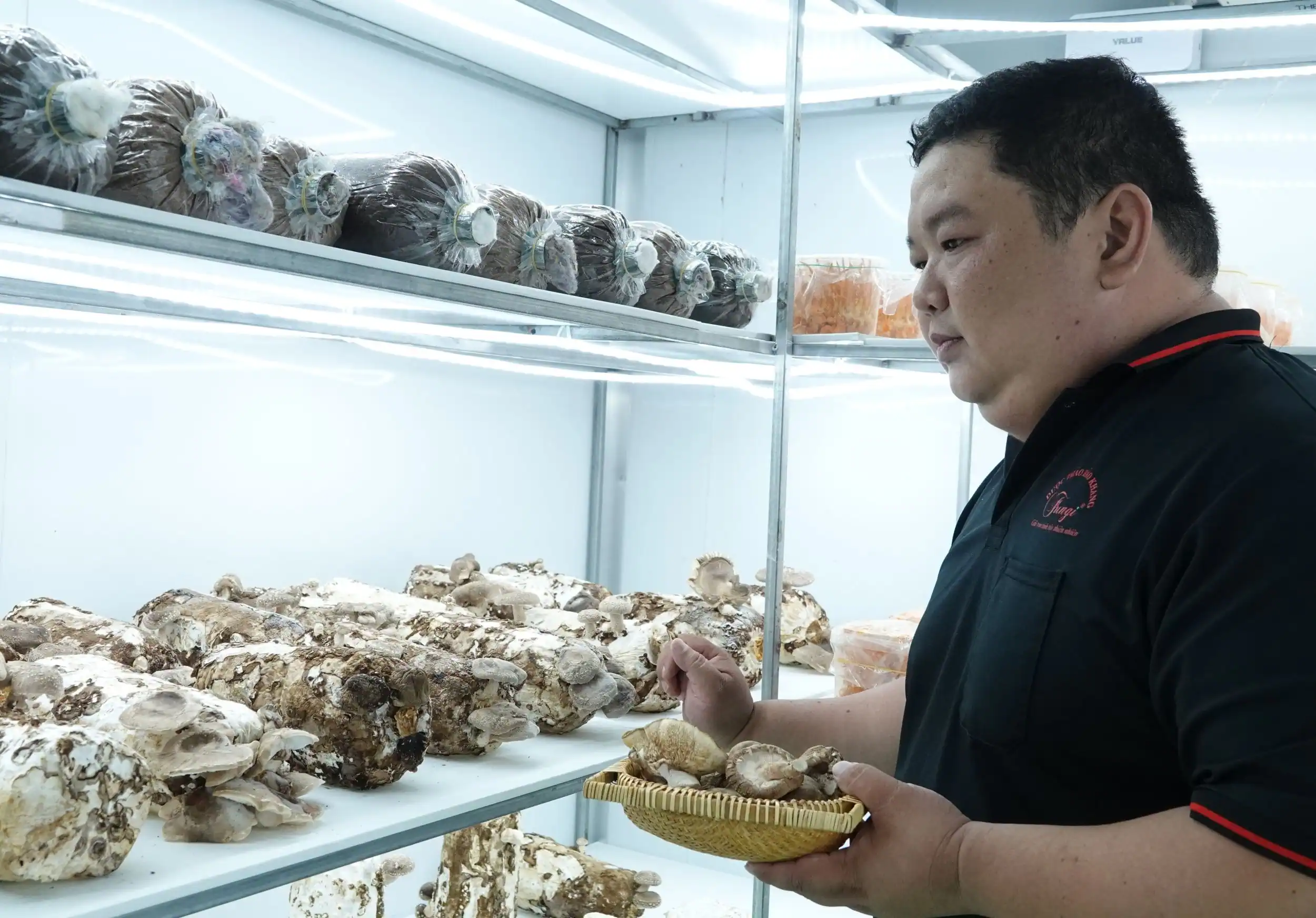 Anh Ðiền chia sẻ thêm, để trồng kết hợp 3 loại nấm trong căn phòng 9m2 đòi hỏi phải có kỹ thuật, nhất là chú ý để tránh lây nhiễm bệnh chéo do mỗi loại có đặc thù riêng. Căn phòng được duy trì nhiệt độ khoảng 20 độ C, độ ẩm từ 70%. Nấm hương trồng khoảng 3 tháng có thể thu hoạch, riêng nấm maitake phải mất 6 tháng. Anh Ðiền đang tiếp tục nghiên cứu để hạ thời gian từ trồng đến thu hoạch chỉ khoảng 3 tháng và sẽ có số lượng lớn sản phẩm cung cấp cho thị trường vào đầu năm 2024. Ngoài nấm tươi, các loại nấm ở cơ sở của anh Ðiền còn có thêm sản phẩm sấy thăng hoa, sấy giòn, hấp.