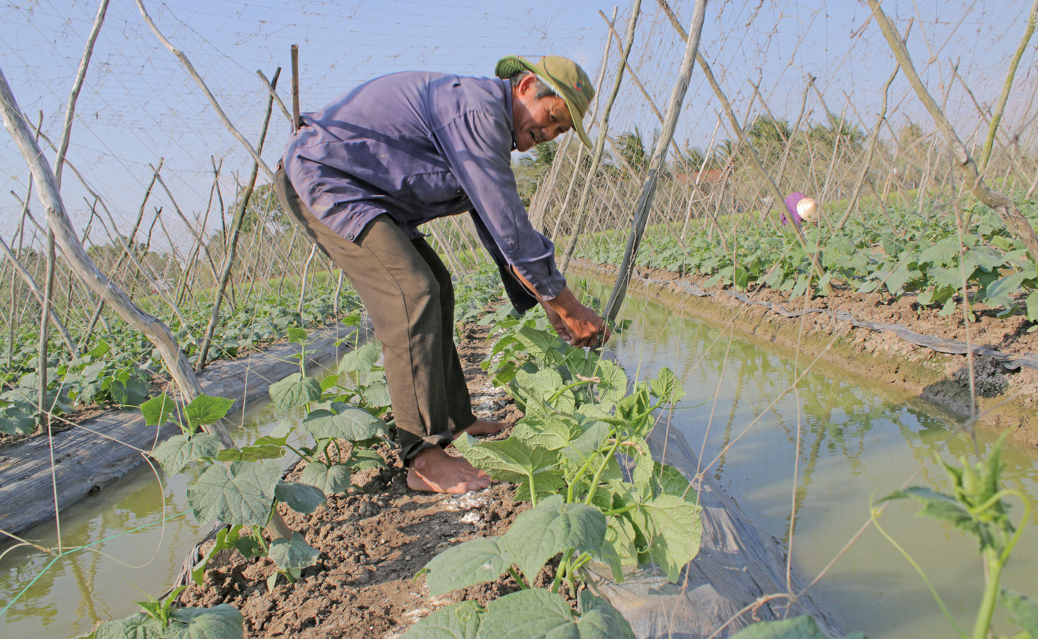 Giữa cái nắng gay gắt của những ngày tháng 3, vợ chồng ông Nguyễn Minh Châu, ngụ ấp Ngãi Lợi B, xã Lợi Bình Nhơn, vẫn cặm cụi chăm sóc những liếp dưa leo của gia đình. Đây là nguồn thu nhập chính của ông bà gần 15 năm nay. Quệt vội những giọt mồ hôi, ông Châu hồ hởi: “Nhờ Hội Nông dân xã giới thiệu, tôi và vài thành viên Tổ hợp tác Sản xuất rau an toàn của xã thí điểm bón phân hữu cơ sinh học nên đợt tết vừa qua, khổ qua được mùa, trúng giá. So với sử dụng các loại phân bón trước đây, bón phân hữu cơ, dùng thuốc trừ sâu sinh học mang lại hiệu quả cao hơn, kéo dài thời gian thu hoạch từ 7-10 ngày. Vụ này, tôi chuyển sang trồng dưa leo và tiếp tục áp dụng những kỹ thuật được hướng dẫn, hy vọng năng suất cao hơn”.