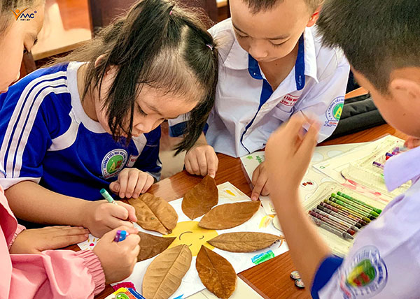 Các em học sinh thực hiện sản phẩm. Ảnh: CTV