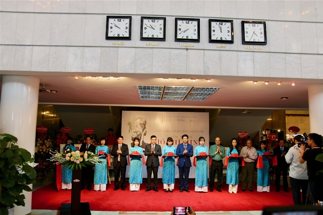 Các đại biểu cắt băng khai mạc Trưng bày chuyên đề “Chân dung Hồ Chí Minh – Góc nhìn từ tranh cổ động (1969 – 2011)” (Ảnh: BTHCM)