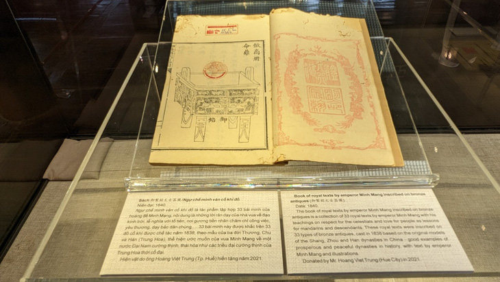 Sách Ngự chế minh văn cổ khí đồ được mang ra giới thiệu tại triển lãm lần này ở Huế - Ảnh: NHẬT LINH
