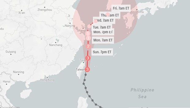 Trong 24 giờ tới (tính từ 14h ngày 12/9), cơn bão có thể gây ra gió giật mạnh và mưa lớn tại các địa phương gồm Thượng Hải, Chiết Giang, Giang Tô và Phúc Kiến.