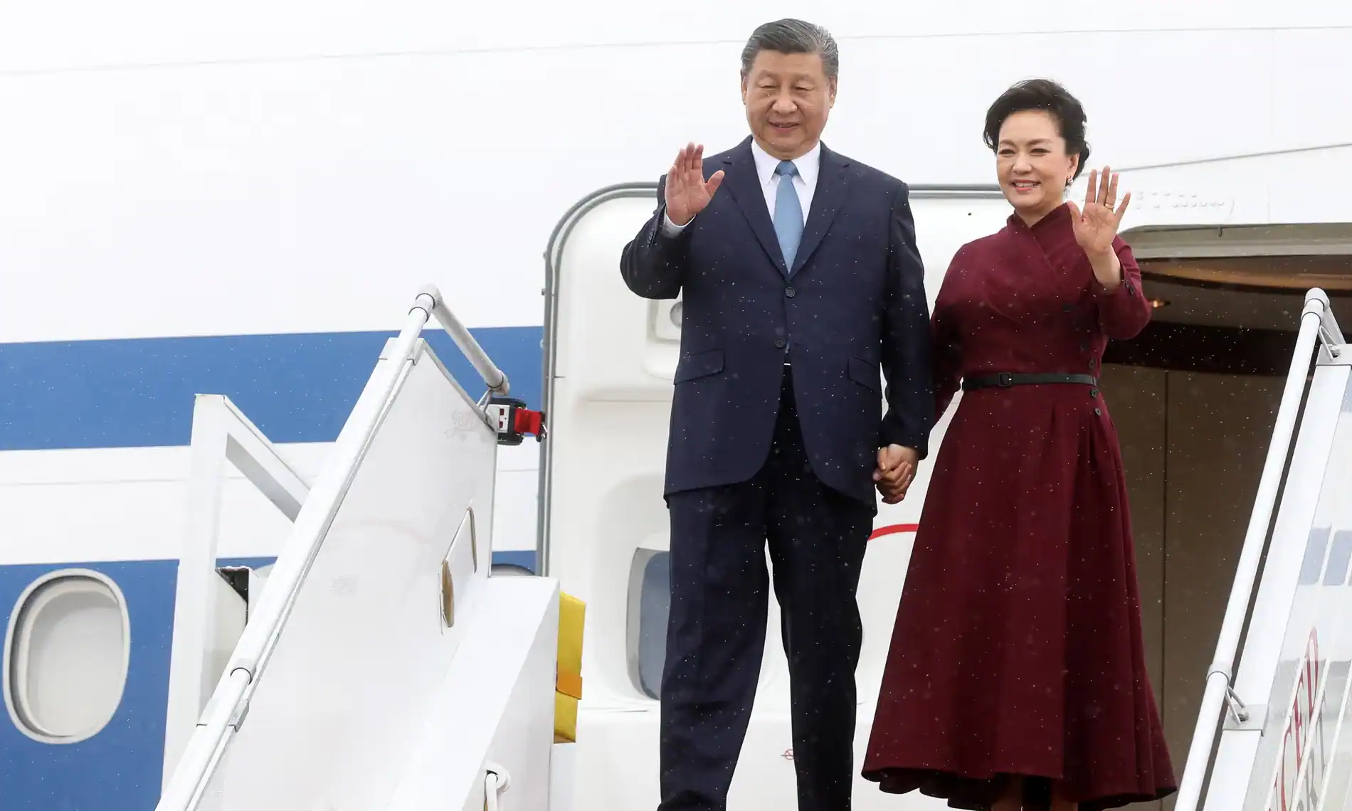Chủ tịch Trung Quốc Tập Cận Bình (trái) và phu nhân Bành Lệ Viên tại Sân bay Paris-Orly (Pháp) hôm 5-5. Ảnh: Guardian