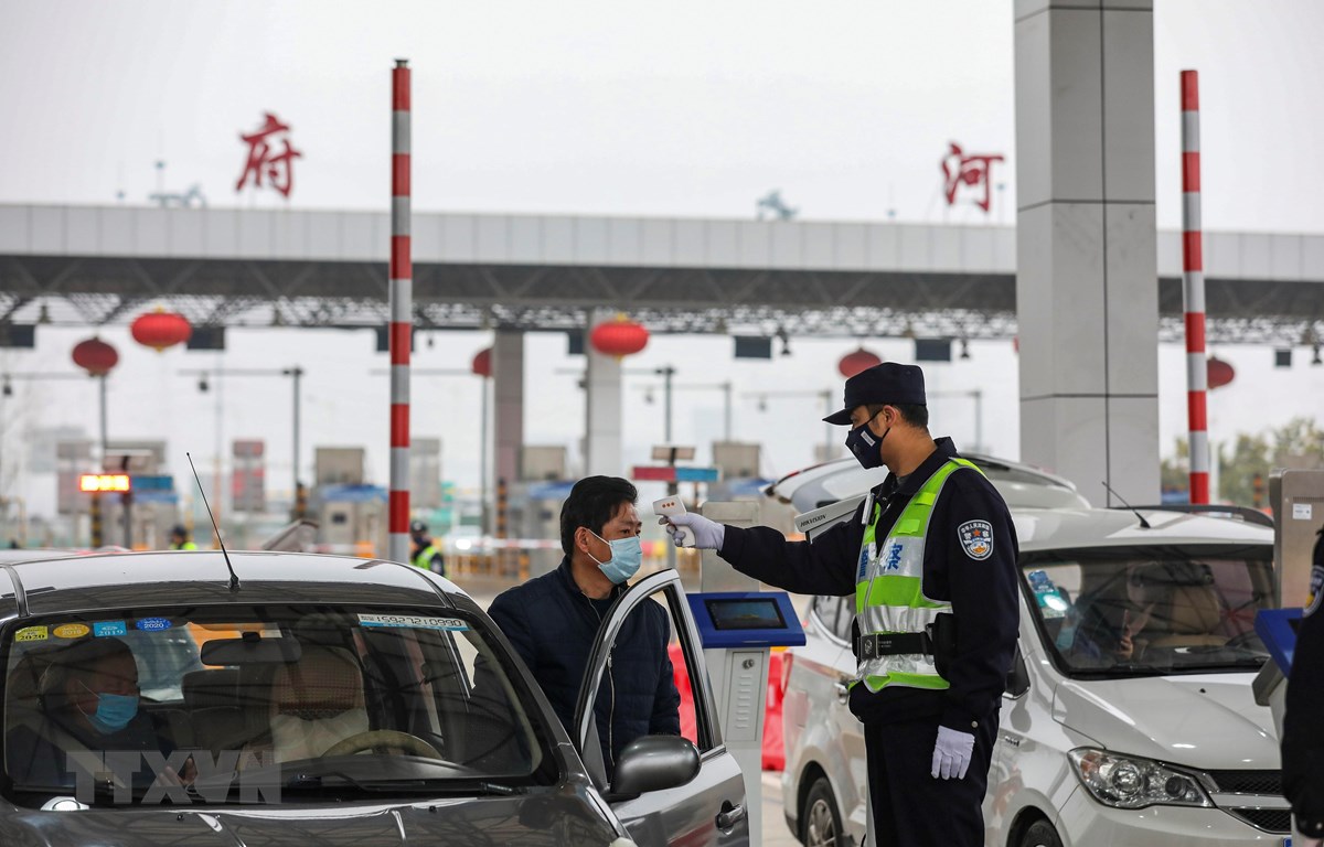 Kiểm tra thân nhiệt của lái xe trên tuyến đường cao tốc ở Vũ Hán, tỉnh Hồ Bắc, Trung Quốc, ngày 24/1. (Ảnh: AFP/TTXVN