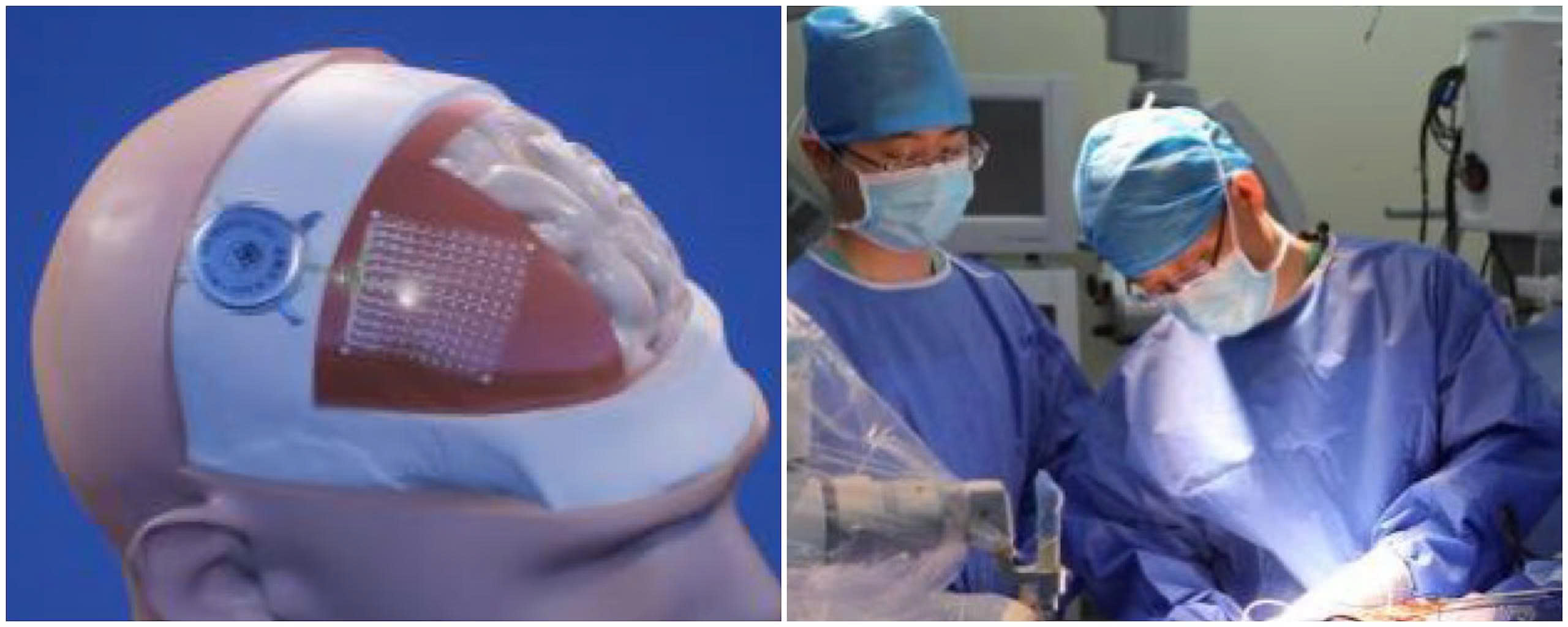 Chip BMI Beinao (trái) và ca phẫu thuật cấy chip được tiến hành tại Bệnh viện Xuanwu vào tháng 5-2025. Ảnh: NewCyber