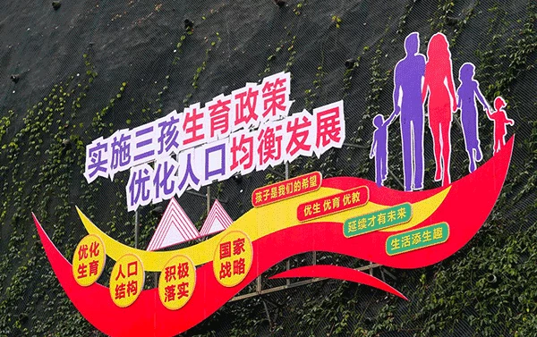 Áp phích cổ động người dân sinh con thứ 3 ở Trung Quốc. Ảnh: Getty Images