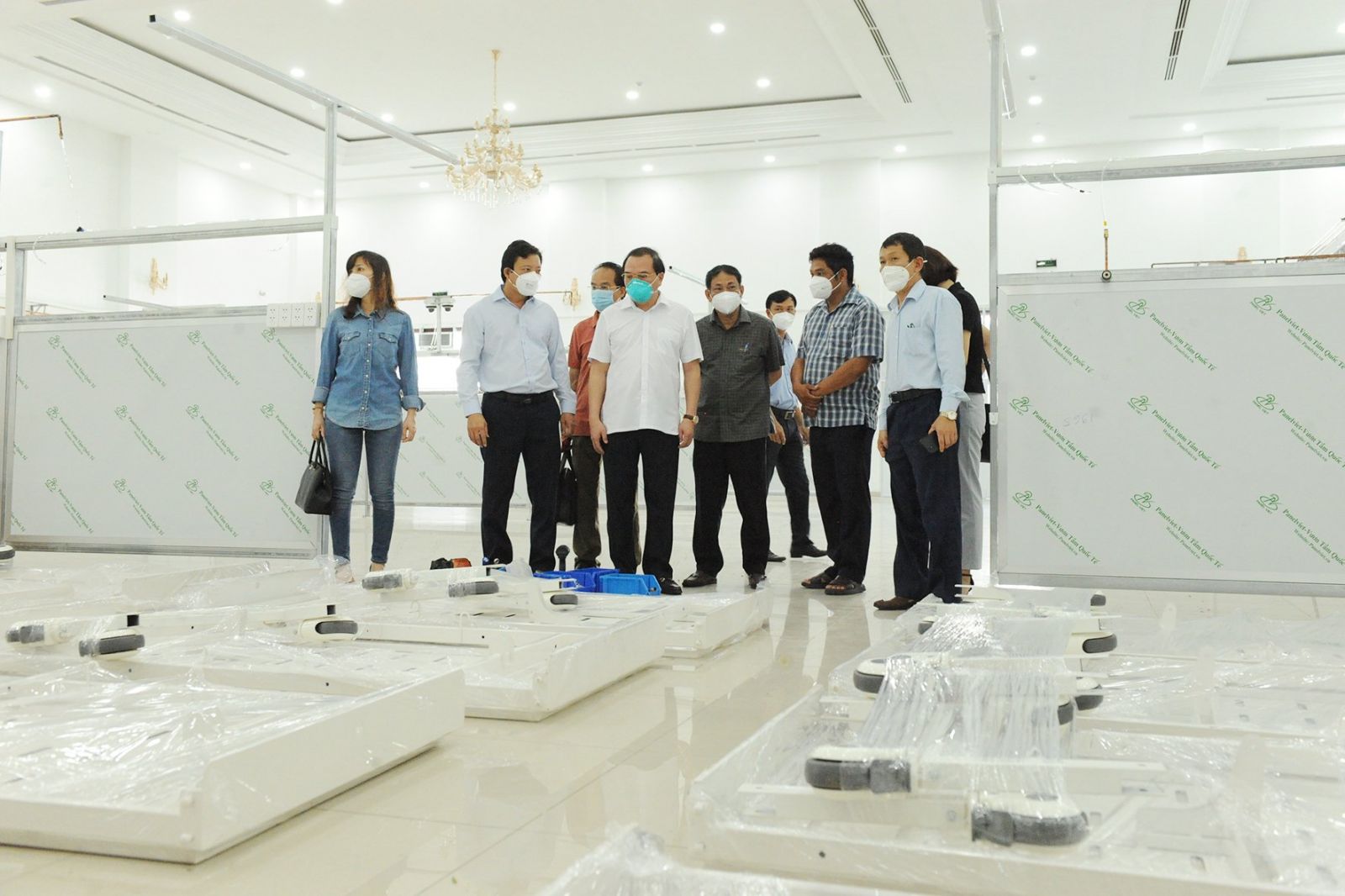 Đoàn khảo sát tiến độ thi công, chuẩn bị các điều kiện cần thiết để đưa Trung tâm Hồi sức tích cực bệnh nhân Covid-19 đi vào hoạt động