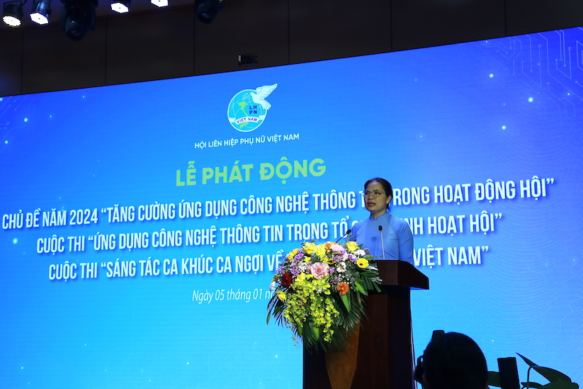 Ngày 05/01, Trung ương Hội LHPN Việt Nam tổ chức phát động chủ đề công tác năm 2024 về "Tăng cường ứng dụng công nghệ thông tin trong hoạt động Hội" và 2 cuộc thi "Ứng dụng công nghệ thông tin trong tổ chức sinh hoạt Hội" và "Sáng tác ca khúc ca ngợi người phụ nữ, người mẹ Việt Nam".