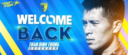 Mới đây, Trần Đình Trọng đã được Hà Nội FC triệu hồi về khoác áo đội bóng Thủ đô chinh chiến tại V-League 2018. Thông tin được đăng tải trên Facebook của các nhà cựu vô địch V-League.