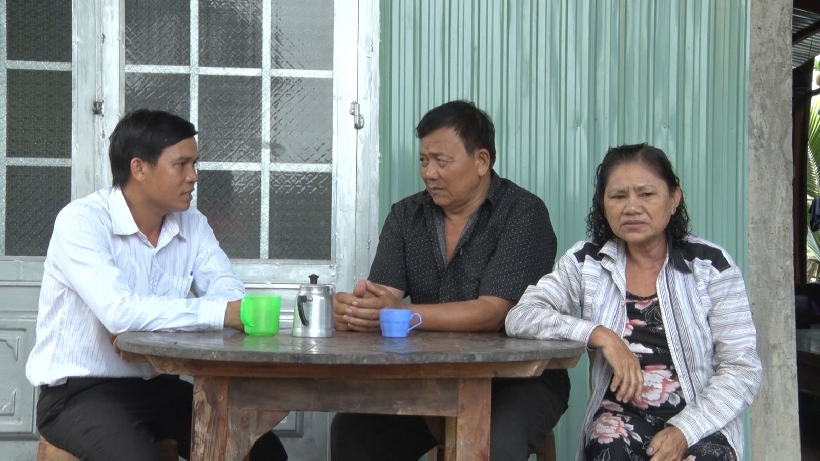 Anh Nguyễn Văn Trường (bìa trái) luôn tận tâm, hết lòng giúp đỡ những hoàn cảnh khó khăn trong ấp
