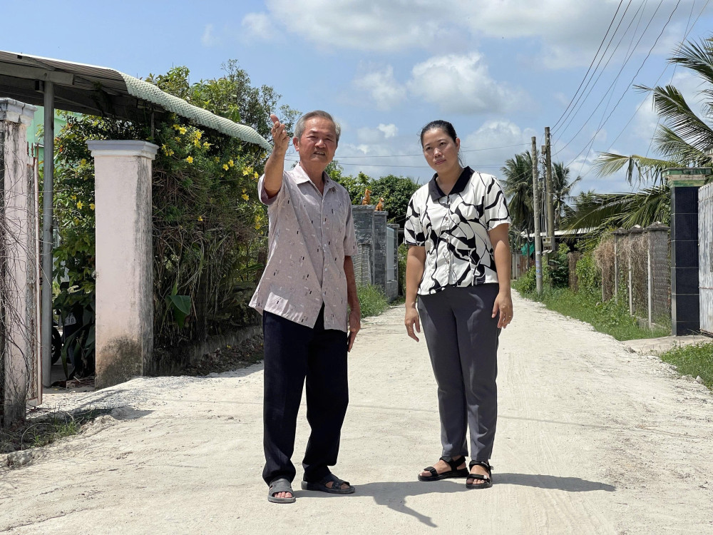 Trong mọi phong trào, chị đều lấy người dân làm trung tâm, lấy sự đồng thuận của người dân làm nền tảng. Địa phương triển khai kế hoạch bê tông hóa đường giao thông nông thôn theo phương châm “Nhà nước và Nhân dân cùng làm”, chị cùng Chi bộ ấp, Ban Công tác Mặt trận và các đoàn thể "đi từng ngõ, gõ từng nhà" để vận động, giải thích cho người dân hiểu rõ lợi ích lâu dài của công trình. Nhờ vậy, 21 hộ dân đã tự nguyện tháo dỡ hàng rào, hoa màu để mở rộng mặt đường.