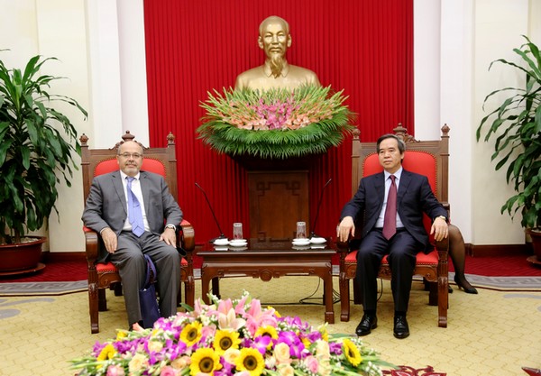 Đồng chí Nguyễn Văn Bình hoan nghênh Đoàn cán bộ của Quỹ Tiền tệ quốc tế đến làm việc với Ban Kinh tế Trung ương. Trao đổi với Đoàn, đồng chí Trưởng Ban Kinh tế Trung ương đánh giá cao những đóng góp của IMF trong việc hỗ trợ Việt Nam đạt được những bước tiến to lớn và vững chắc trong việc ổn định kinh tế vĩ mô, duy trì tốc độ tăng trưởng kinh tế, phát triển thị trường tài chính, tăng cường hội nhập sâu rộng hơn với khu vực và thế giới.
