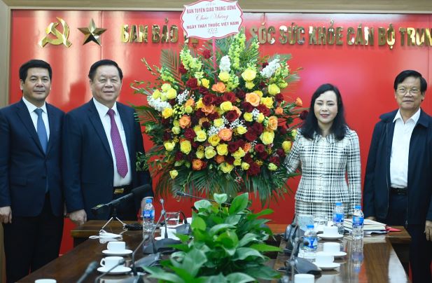 | Bí thư Trung ương Đảng, Trưởng ban Tuyên giáo Trung ương Nguyễn Trọng Nghĩa thăm và chúc mừng Ban Bảo vệ chăm sóc sức khỏe cán bộ Trung ương nhân ngày 27/2. (Ảnh: ĐT) |