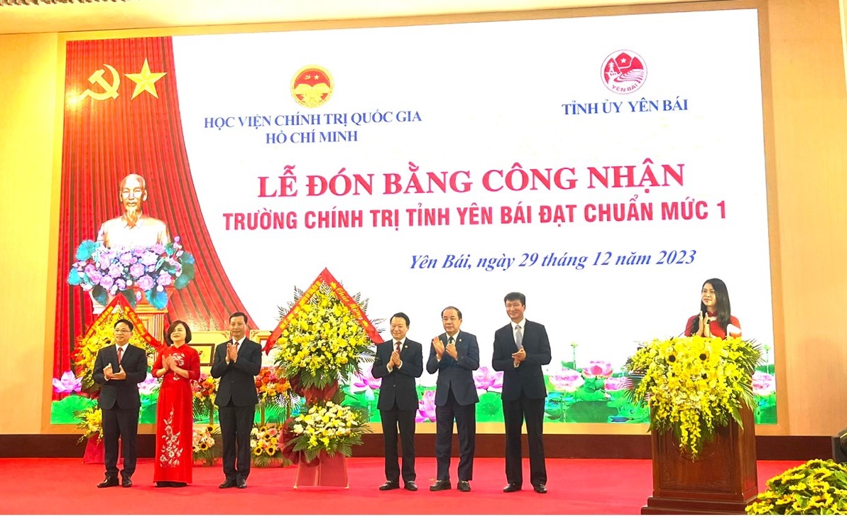 Chiều 29/12, Tỉnh ủy Yên Bái phối hợp với Học viện Chính trị Quốc gia Hồ Chí Minh tổ chức Lễ đón Bằng công nhận Trường Chính trị tỉnh Yên Bái đạt chuẩn mức 1. Đây là sự kiện có ý nghĩa đặc biệt quan trọng, là mốc son đánh dấu chặng đường 67 năm xây dựng và phát triển của Trường Chính trị tỉnh Yên Bái.