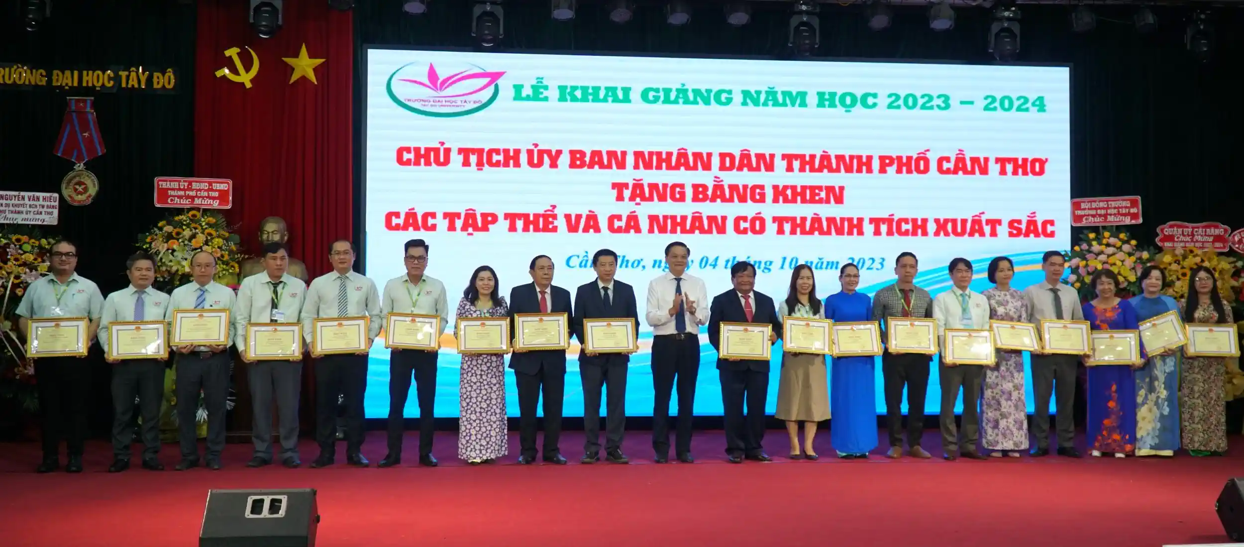 Dịp này, Trường có 14 tập thể nhận danh hiệu Tập thể Lao động Xuất sắc; 19 cá nhân nhận Bằng khen của UBND TP Cần Thơ… Trường khen thưởng 2 tân sinh viên là thủ khoa đầu vào năm 2023.