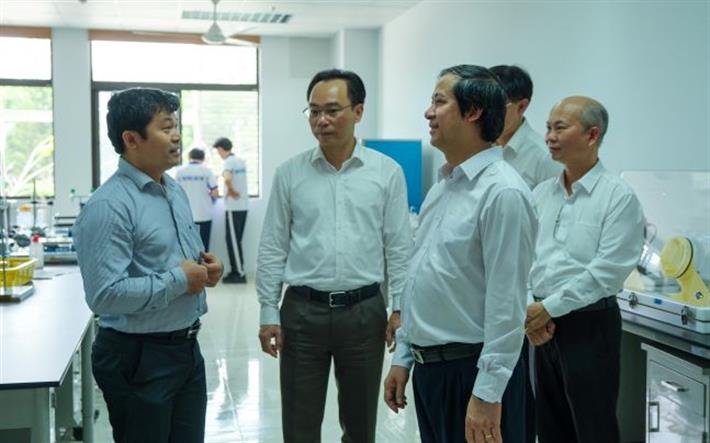 | Bộ trưởng Nguyễn Kim Sơn thăm cơ sở vật chất, trò chuyện với cán bộ Trường Đại học Cần Thơ. Ảnh: TT |