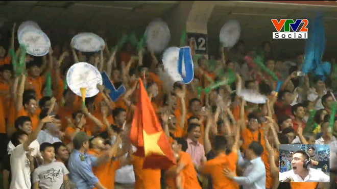 Niềm vui của các CĐV Trường ĐH Lạc Hồng. Ảnh chụp màn hình