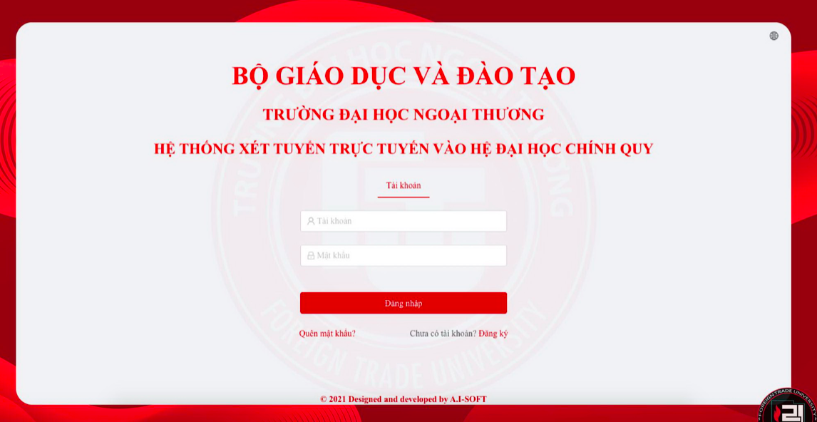 | Giao diện đăng ký xét tuyển trực tuyến chính thức của Trường ĐH Ngoại thương. (Ảnh: TT) |