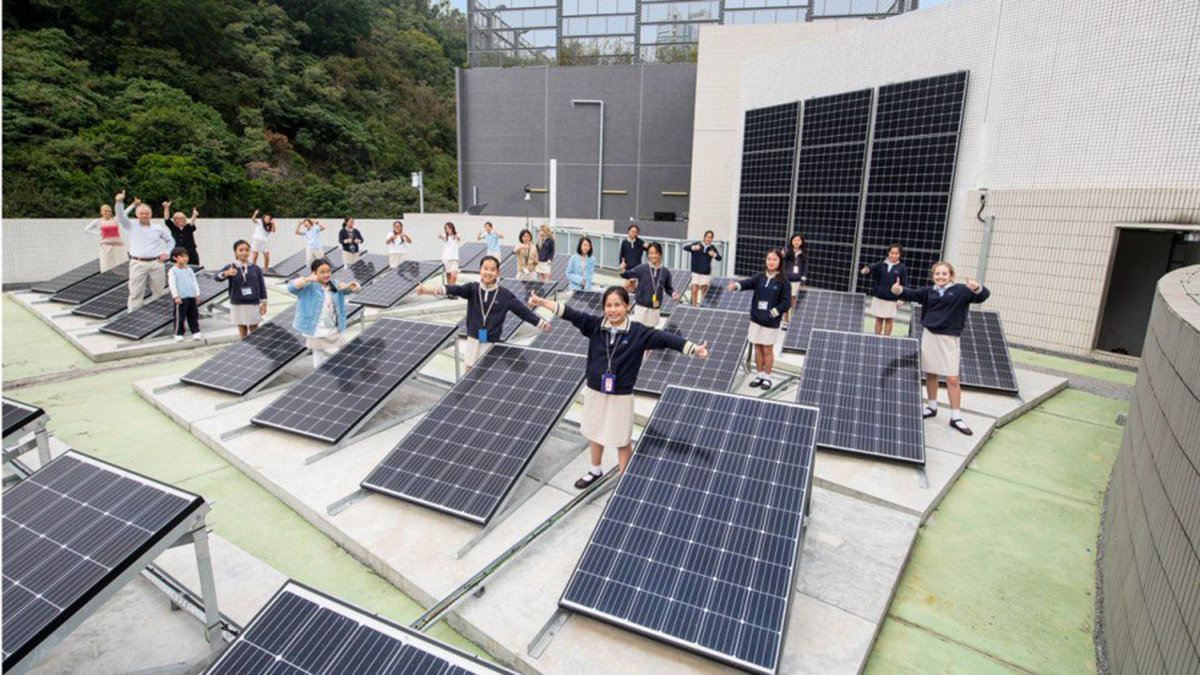 Các tấm pin năng lượng Mặt trời trên tầng thượng của Trường ISF. Ảnh: SCMP