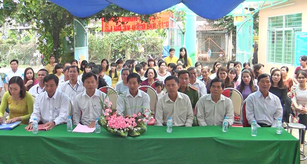 Lãnh đạo huyện, xã cùng đông đảo thầy cô, phụ huynh và học sinh dự lễ