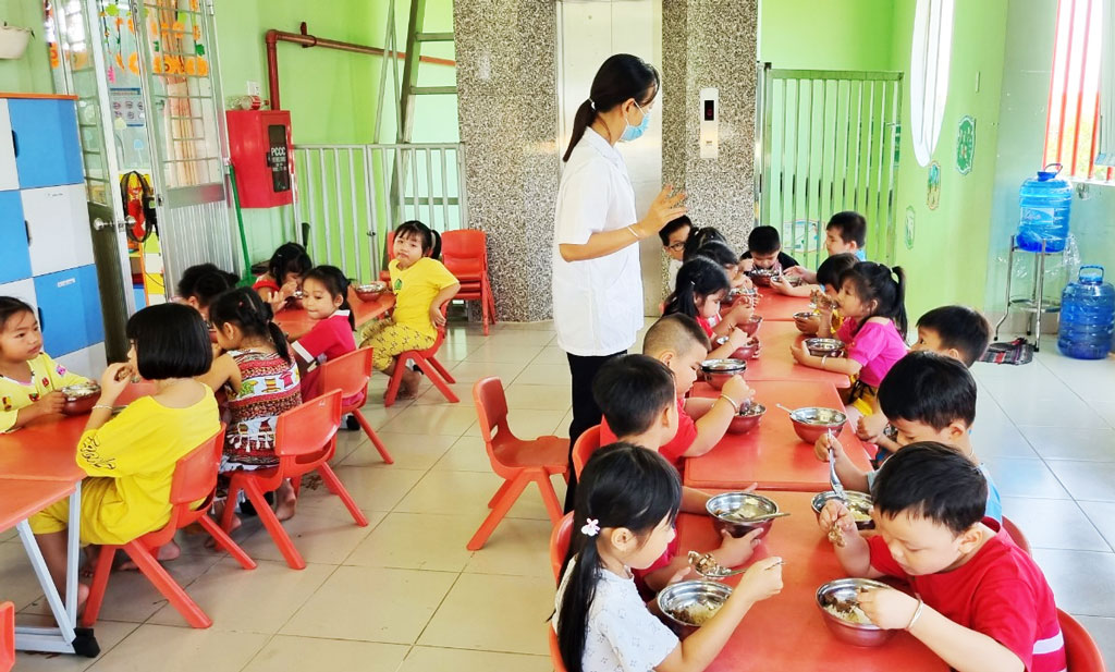 Trường Mẫu giáo Nhơn Thạnh Trung chú trọng vệ sinh an toàn thực phẩm cho trẻ