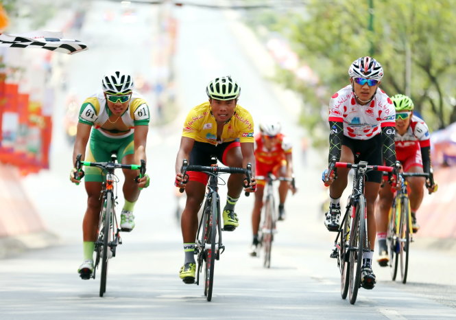 Trường Tài (giữa, áo vàng) bảo vệ thành công Áo vàng tổng sắp. Ảnh: Q.L