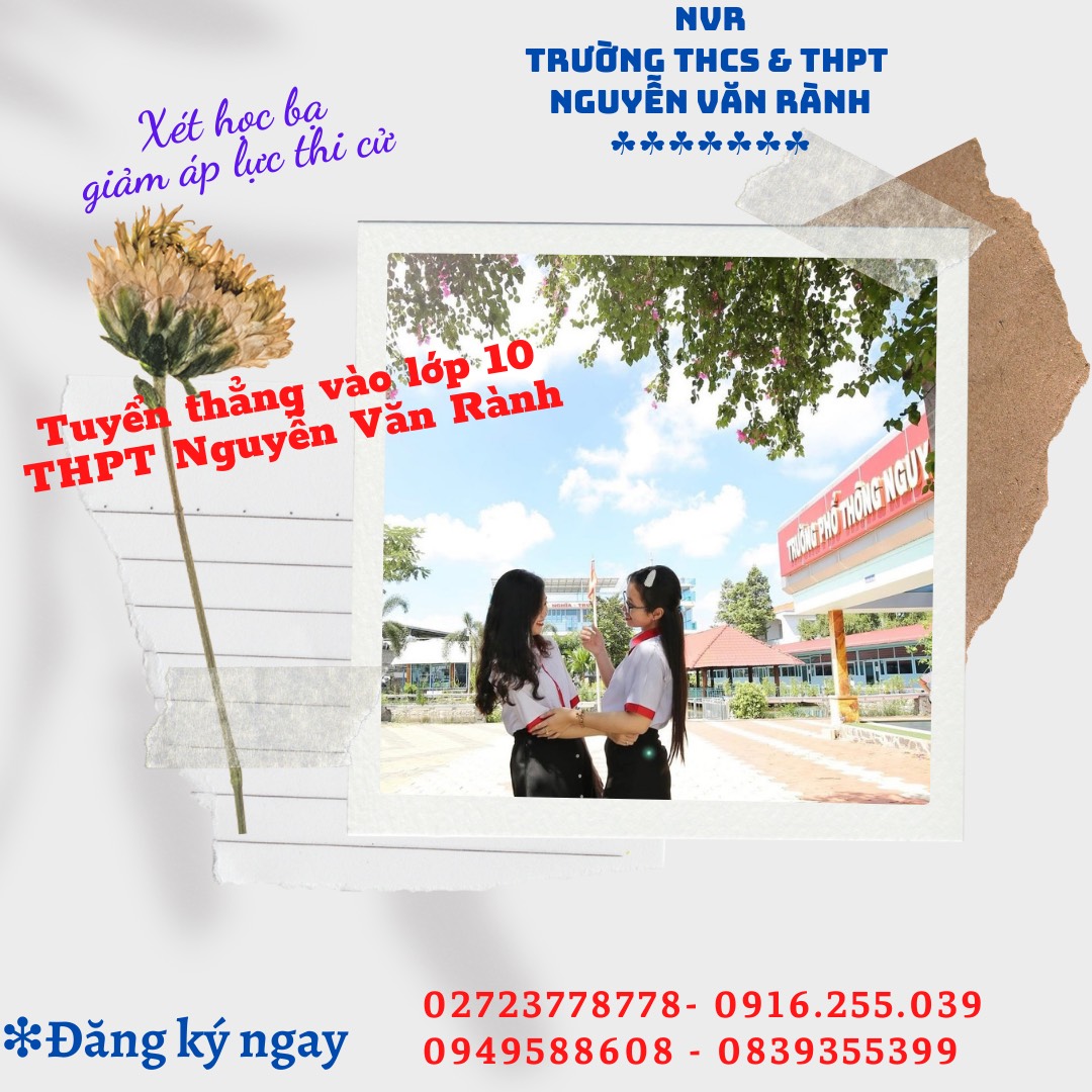 Nhằm giảm áp lực thi cử và giúp các bạn học sinh lớp 9 có thêm nhiều cơ hội để tìm thấy một môi trường cấp 3 phù hợp, Trường THCS & THPT Nguyễn Văn Rành đã triển khai hình thức xét học bạ TUYỂN THẲNG vào lớp 10 với hình thức xét tuyển vô cùng đơn giản: