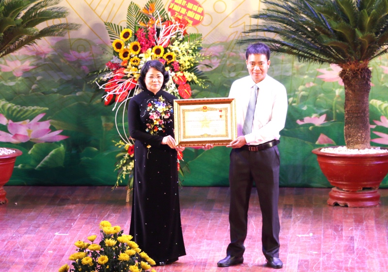 Trong không khí trang trọng, thay mặt lãnh đạo Đảng và Nhà nước, Phó Chủ tịch nước Đặng Thị Ngọc Thịnh đã trao tặng danh hiệu Anh hùng Lực lượng Vũ trang Nhân dân cho đại diện thân nhân liệt sĩ Nguyễn Đình Xô.