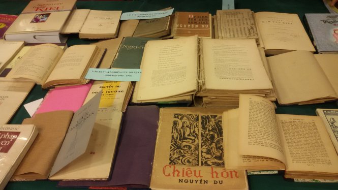 Những tác phẩm của Nguyễn Du được trưng bày tại hội thảo - Ảnh: V.V.TUÂN