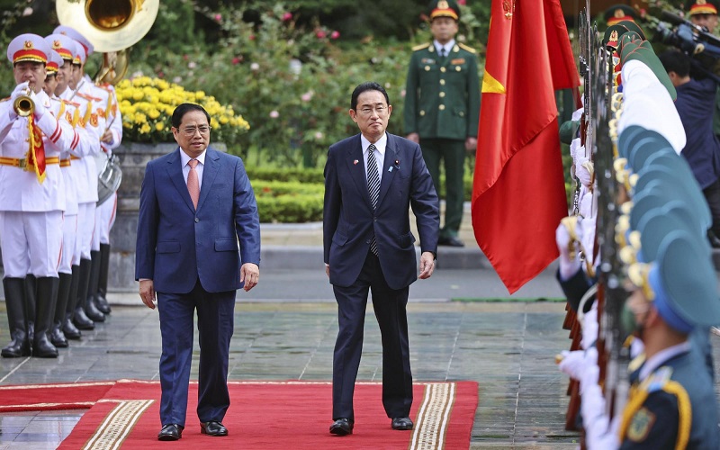 Hãng tin Kyodo dẫn lời Thủ tướng Kishida phát biểu sau cuộc hội đàm với Thủ tướng Chính phủ Phạm Minh Chính tại thủ đô Hà Nội rằng Việt Nam là “đối tác quan trọng” trong việc hiện thực hóa tầm nhìn về khu vực Ấn Độ Dương-Thái Bình Dương tự do và rộng mở của Nhật Bản.