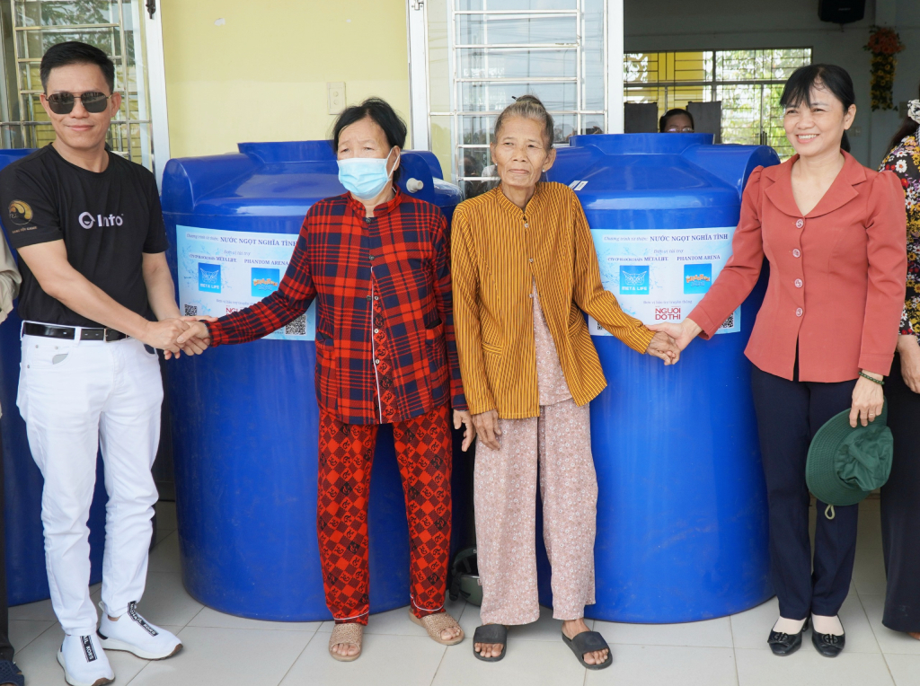 Tại buổi lễ, công ty trao 50 bồn nước ngọt 1.000 lít; 1.500 bình nước ion kiềm 20 lít cho 550 hộ dân khó khăn tại 2 xã Tân Tập và Phước Vĩnh Đông. Đây là món quà ý nghĩa, thiết thực, giúp người dân dự trữ nước sinh hoạt phục vụ nhu cầu hàng ngày.