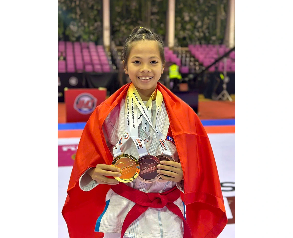 VĐV Nguyễn Yến Nhi giành nhiều huy chương ở Giải vô địch Jujitsu trẻ châu Á 2025.
