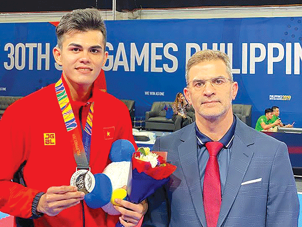 Võ sĩ Đỗ Thanh Nhân và tấm HCB SEA Games 30. Ảnh: NVCC