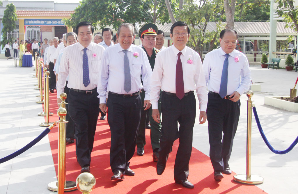 Phó Thủ tướng Thường trực Chính phủ - Trương Hòa Bình, nguyên Chủ tịch nước - Trương Tấn Sang dự lễ đặt tên Trường THCS Nguyễn Văn Chính và khai giảng năm học mới 2017-2018