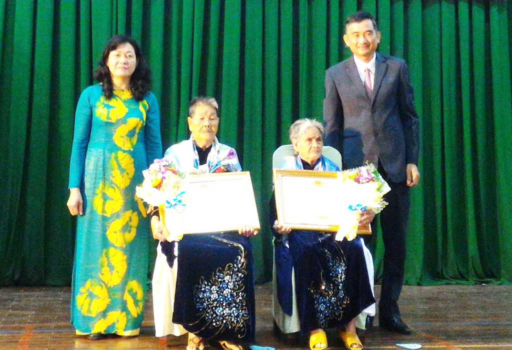 Mẹ Phạm Thị Phiến (thứ 2 trái qua) tại lễ đón nhận danh hiệu “Bà mẹ VNAH”