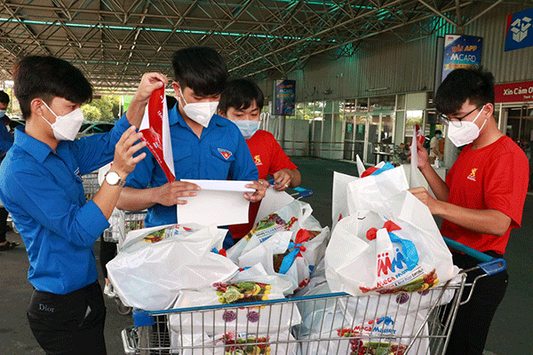 HS, SV tình nguyện vận chuyển nhu yếu phẩm hỗ trợ bà con ở các khu cách ly, khu phong tỏa trong giai đoạn TP Cần Thơ giãn cách xã hội.